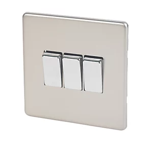 Varilight 10AX 3-Gang 2-Way Light Switch Satin Chrome