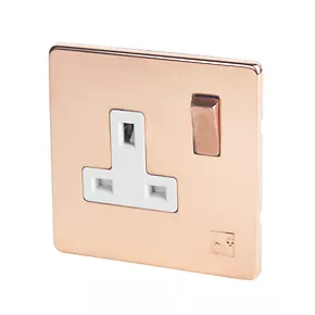 Varilight 13AX 1-Gang DP Switched Plug Socket Anti-Microbial Copper with White Inserts