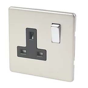 Varilight 13AX 1-Gang DP Switched Plug Socket Satin Chrome with Black Inserts