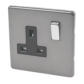 Varilight 13AX 1-Gang DP Switched Plug Socket Slate Grey with Black Inserts