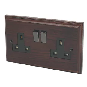 Varilight 13AX 2-Gang DP Switched Plug Socket Dark Oak with Black Inserts