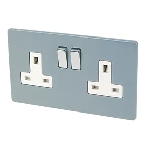 Varilight 13AX 2-Gang DP Switched Plug Socket Sky Blue with White Inserts
