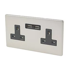 Slim, low profile, screwless faceplate for a sleek, contemporary style. Ideal for charging iPads, iPhones, tablets, mobiles and cameras. USB charging ports can be used with any device, the left-hand USB charging port is optimised for Apple devices and the right-hand USB is for non-Apple devices. Supplied with concealed fixings.
