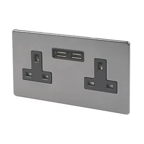 Varilight 13AX 2-Gang Unswitched Socket + 2.1A 2-Outlet Type A USB Charger Slate Grey with Black Inserts
