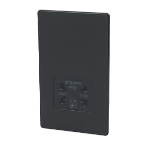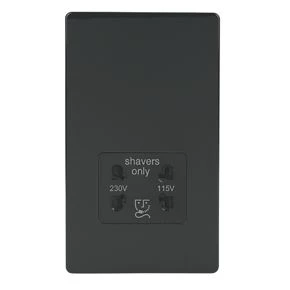 Varilight 2-Gang Dual Voltage Shaver Socket 115 / 230V Jet Black with Colour-Matched Inserts