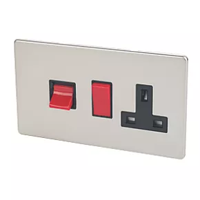 Varilight 45AX 2-Gang DP Cooker Switch & 13A DP Switched Socket Satin Chrome with Black Inserts