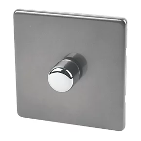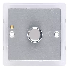 Low profile, screwless faceplate featuring a polished chrome control knob for a sleek, contemporary style. Optimises LED performance with adjustable minimum brightness and a choice of dimming modes. Soft-start feature extends bulb life. Concealed fixings.